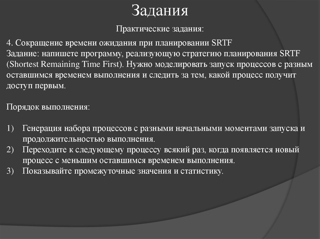 Задание: напишете программу, реализующую стратегию планирования SRTF