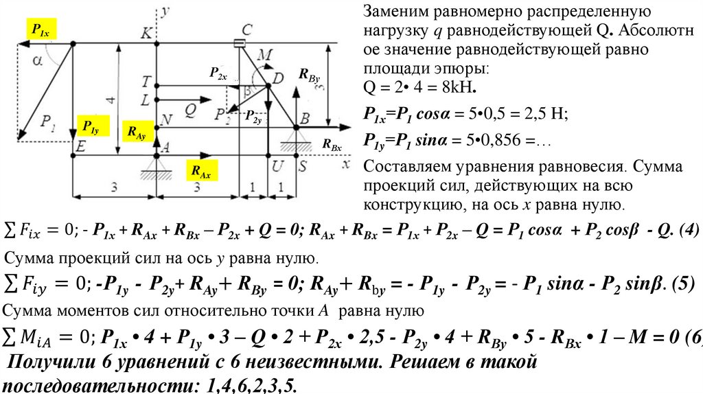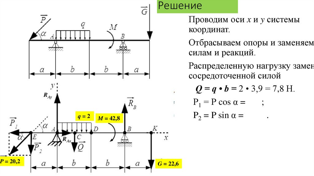 Задача 1. Дано:P = 5 kН; M = 8 kН·м; q = 1,2 kН/м.