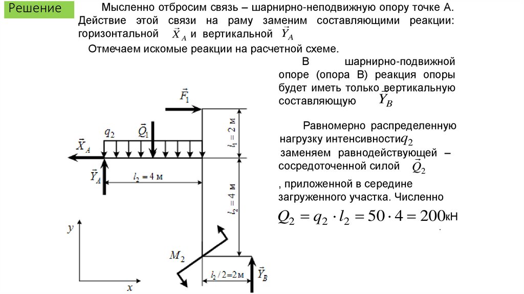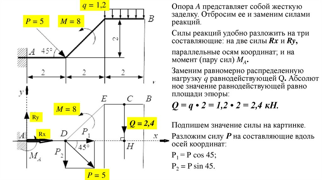 Опора A представляет собой жесткуюзаделку. Отбросим ее и заменим силами