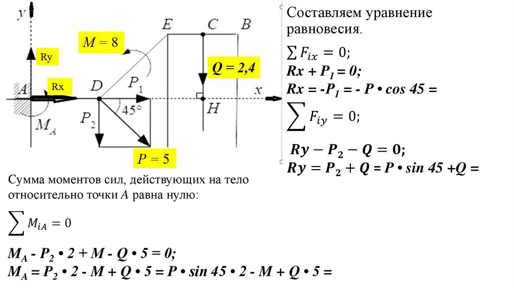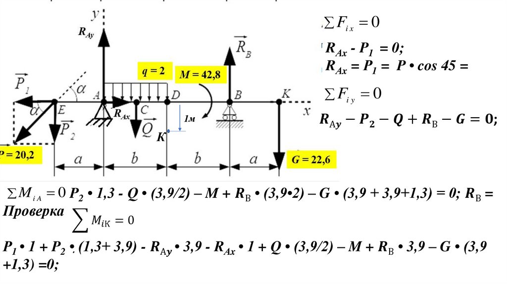 Практическое занятие 22. Задача 1. Дано: P = 5 kН; M = 8 kН·м; q = 1,2 kН/м.