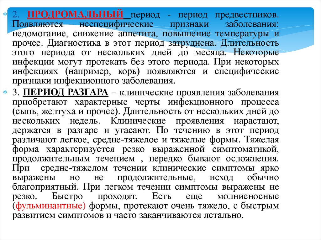 (сыпь, желтуха и прочее). Длительность от нескольких дней до