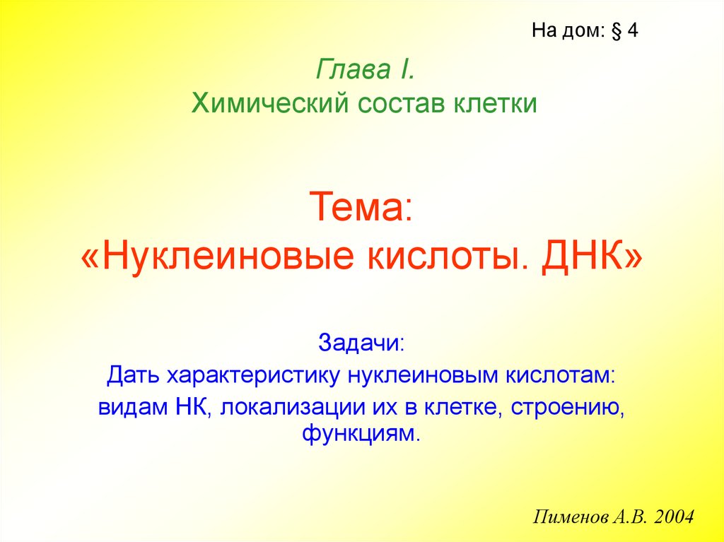 1. Тема: «Нуклеиновые кислоты. ДНК»
