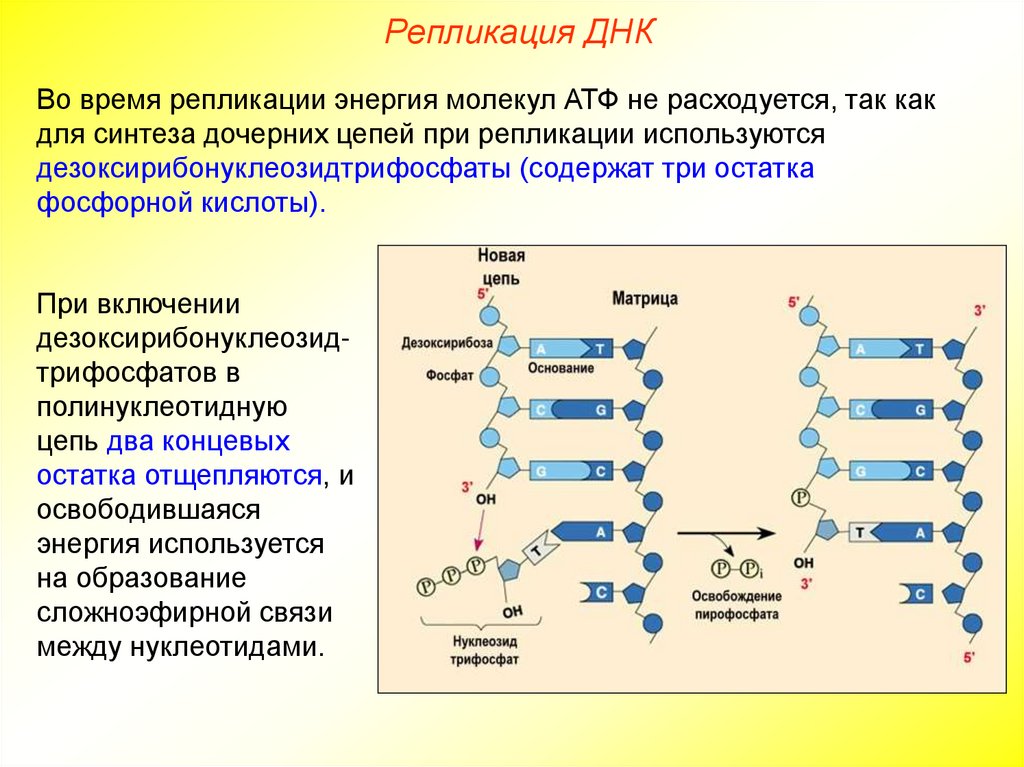 Репликация ДНКВо время репликации энергия молекул АТФ не расходуется, так как