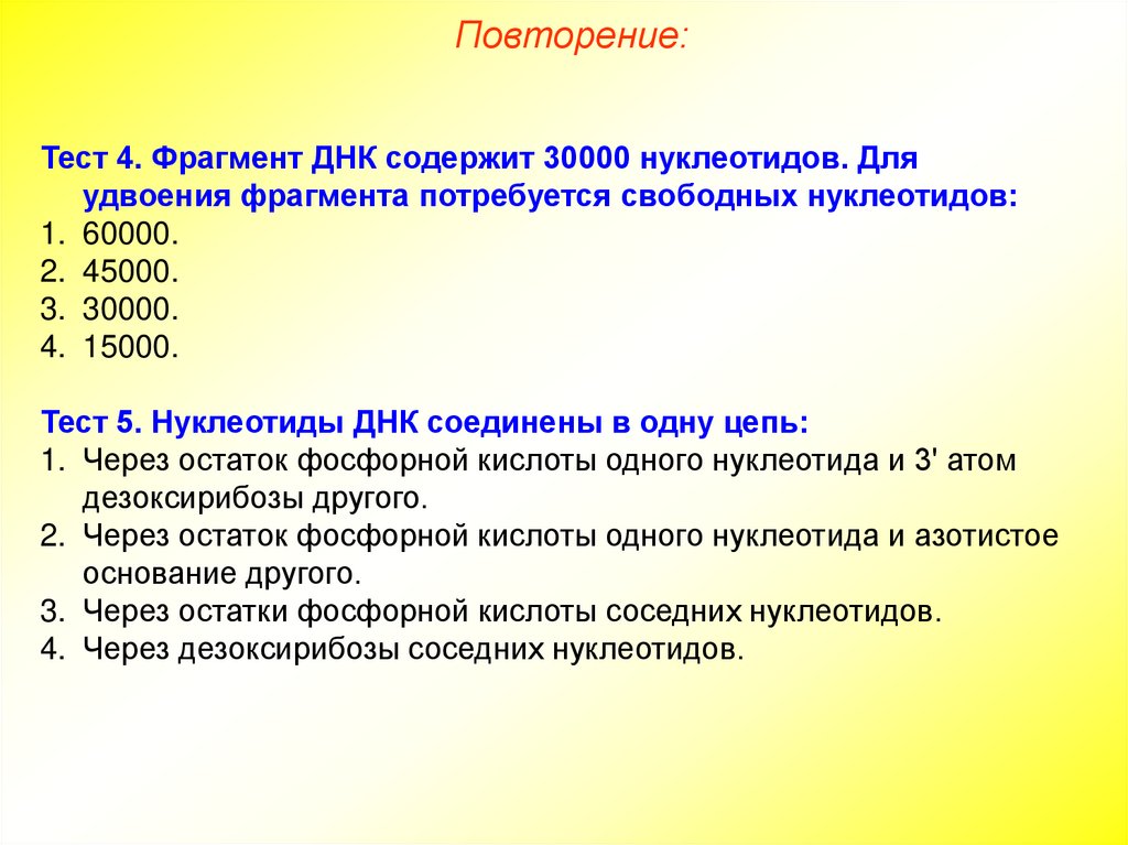 Повторение:Тест 4. Фрагмент ДНК содержит 30000 нуклеотидов. Для