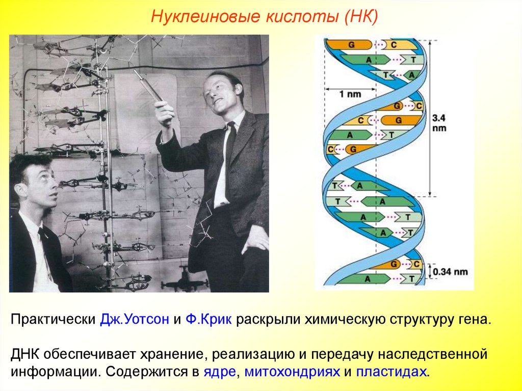 Нуклеиновые кислоты (НК)Практически Дж.Уотсон и Ф.Крик раскрыли химическую структуру гена.