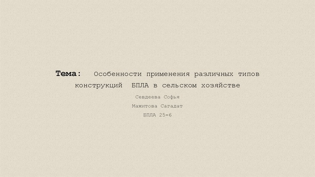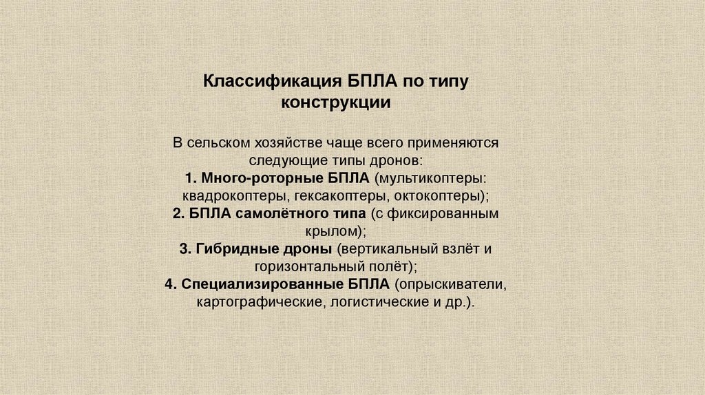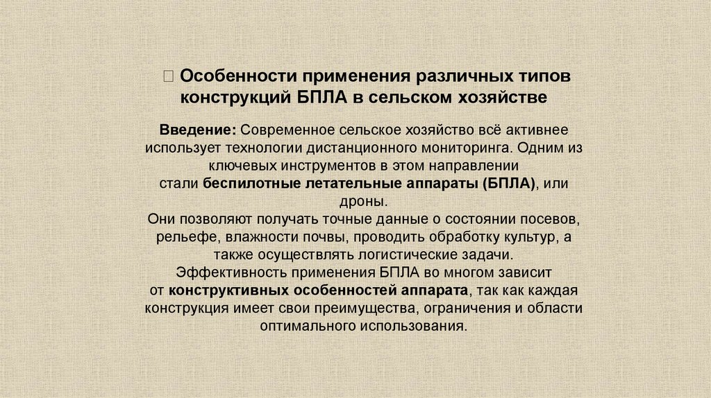 1. Тема: Особенности применения различных типов конструкций БПЛА в сельском хозяйстве