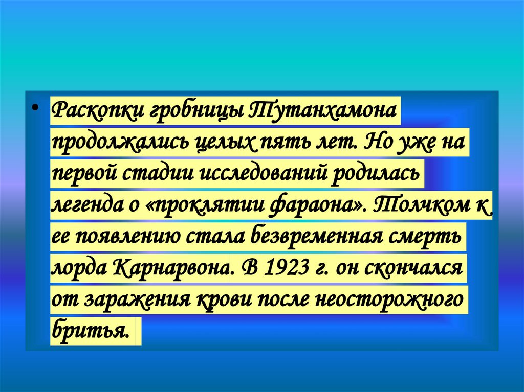 • Раскопки гробницы Тутанхамонапродолжались целых пять лет. Но уже на