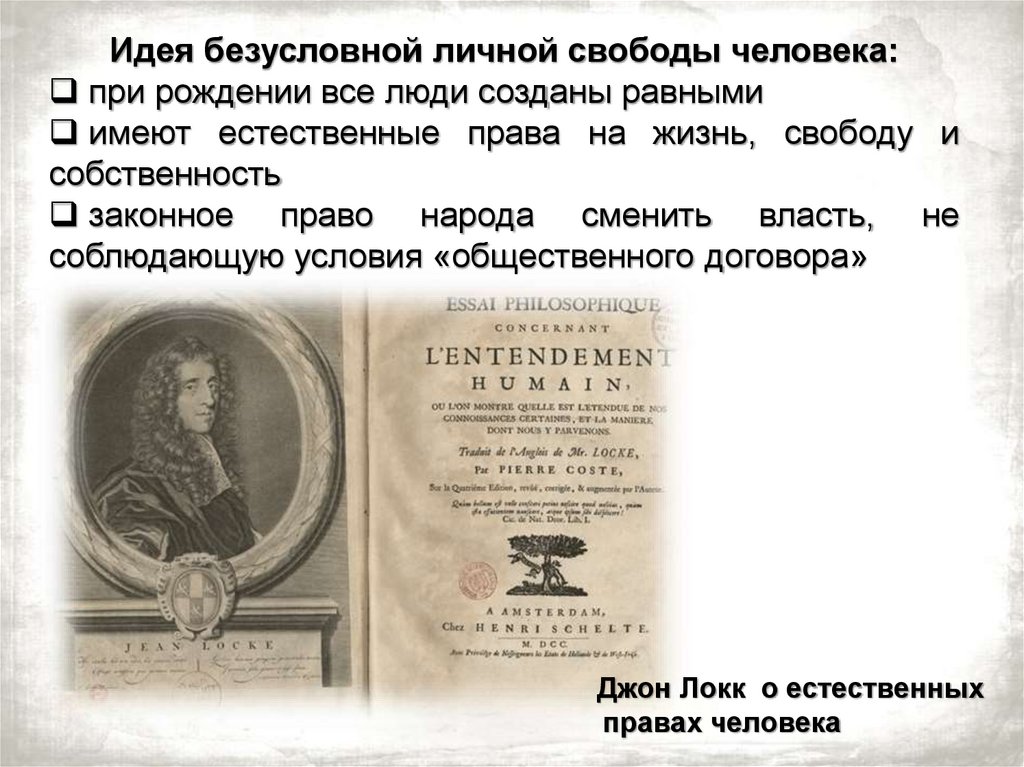 Идея безусловной личной свободы человека:при рождении все люди созданы равными
