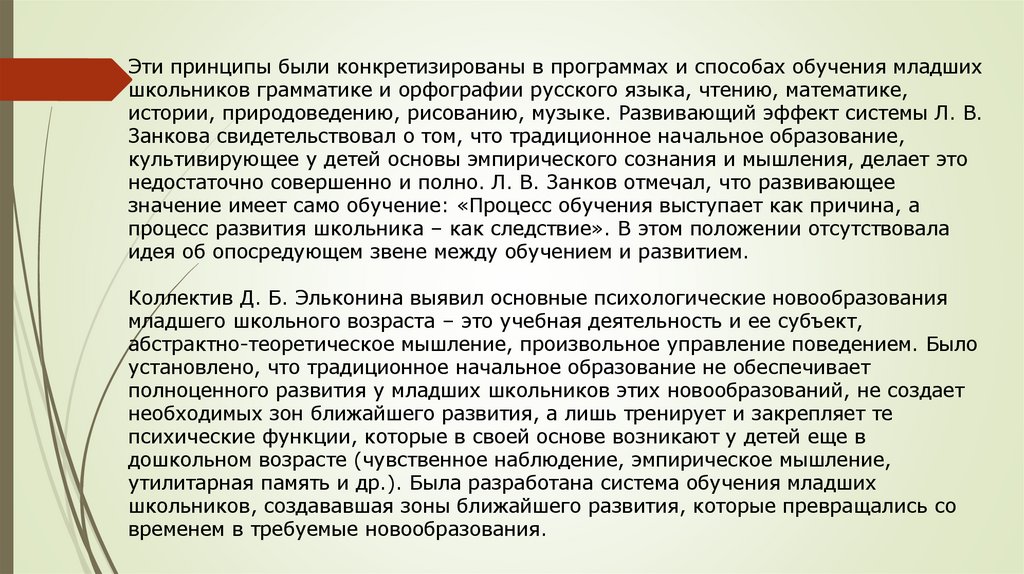 детям, сменившим систему Эльконина–Давыдова на традиционную