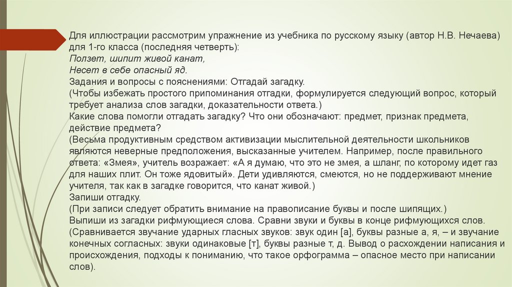 ответа: «Змея», учитель возражает: «А я думаю, что это не змея, а шланг, по которому идет газ