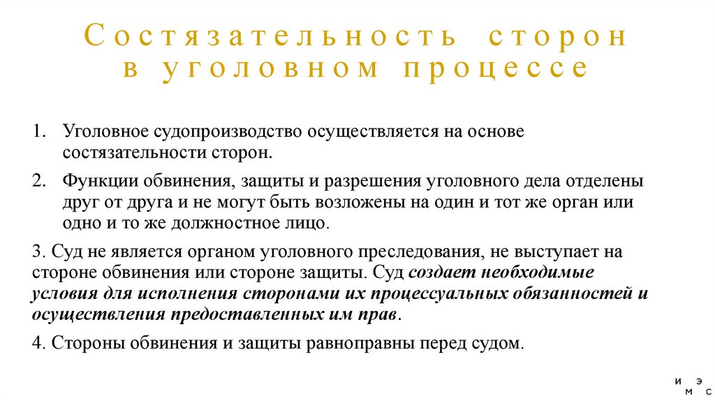 2. Функции обвинения, защиты и разрешения уголовного дела отделены
