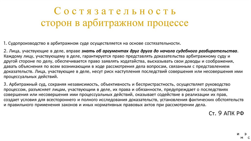 1. Судопроизводство в арбитражном суде осуществляется на основе состязательности.