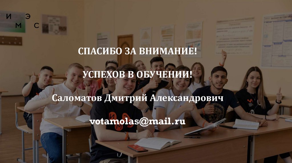 СПАСИБО ЗА ВНИМАНИЕ!УСПЕХОВ В ОБУЧЕНИИ!