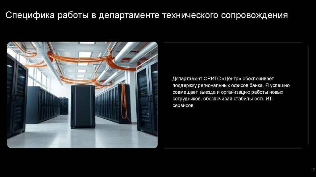 Специфика работы в департаменте технического сопровожденияДепартамент ОРИТС «Центр» обеспечивает