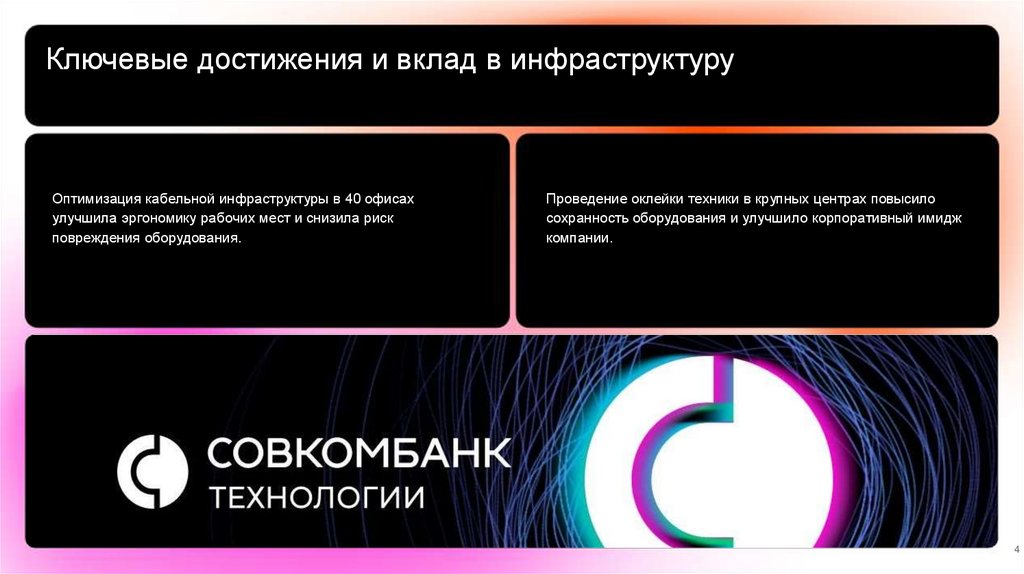 Ключевые достижения и вклад в инфраструктуруОптимизация кабельной инфраструктуры в 40 офисах