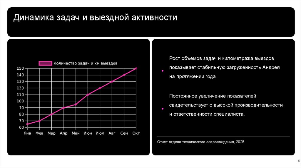 Динамика задач и выездной активностиРост объемов задач и километража выездов