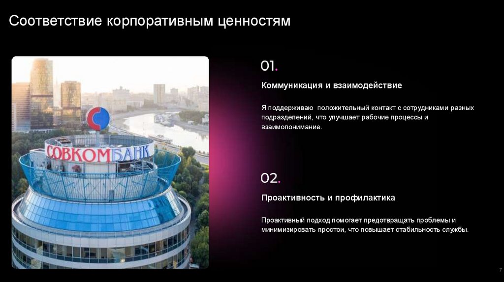 Соответствие корпоративным ценностямКоммуникация и взаимодействие