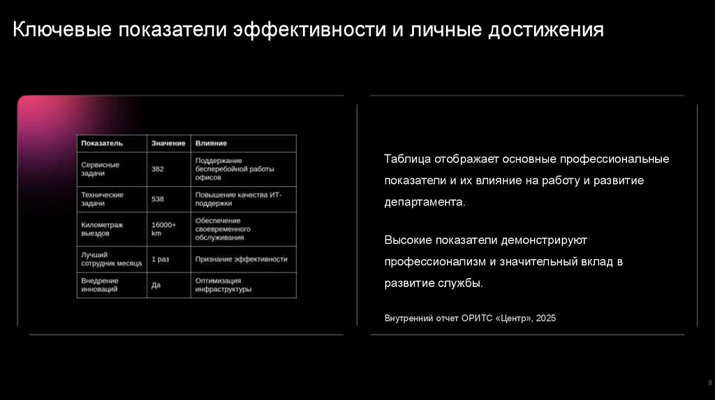Ключевые показатели эффективности и личные достиженияТаблица отображает основные профессиональные