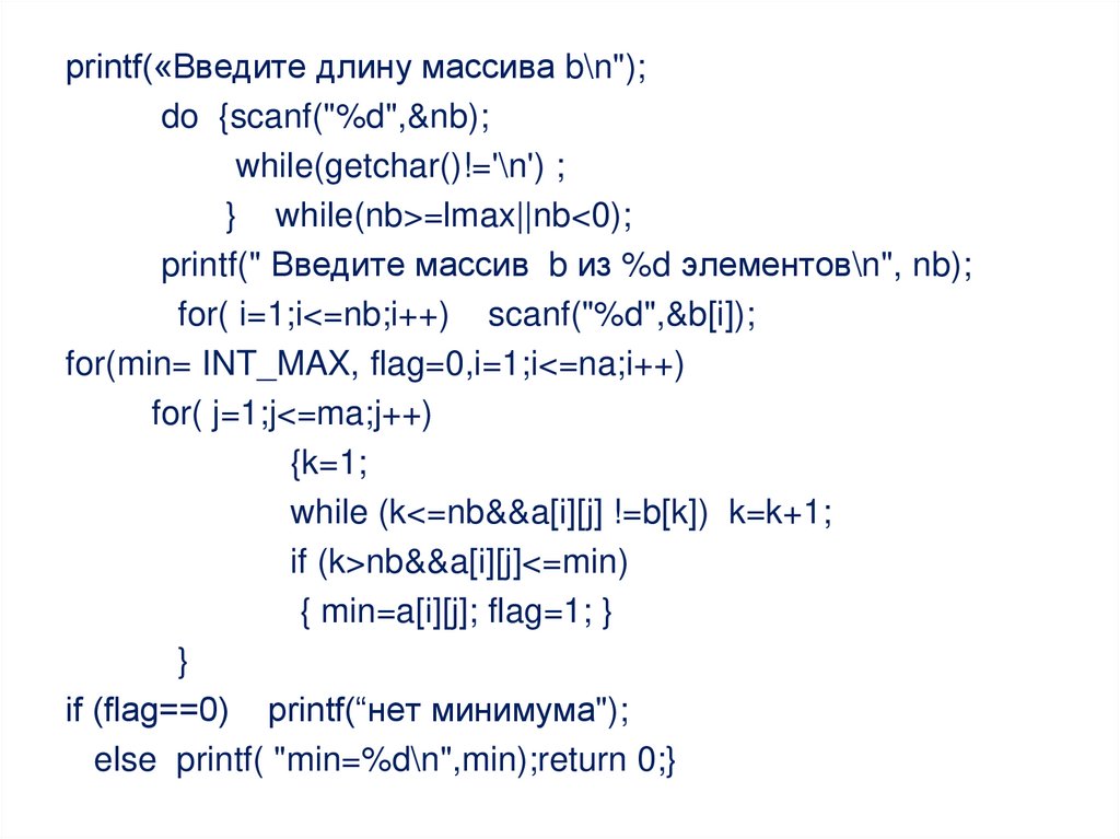 printf(«Введите длину массива b\n");do {scanf("%d",&nb);