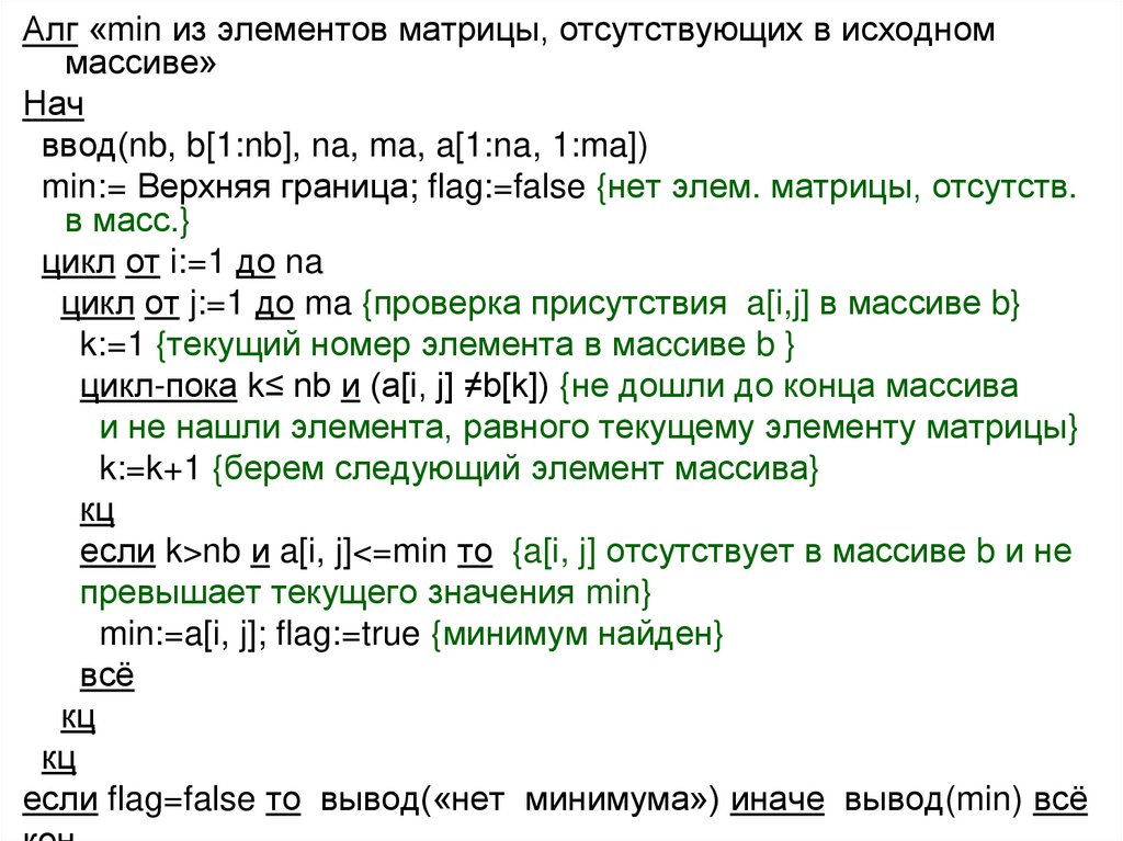 Алг «min из элементов матрицы, отсутствующих в исходноммассиве»