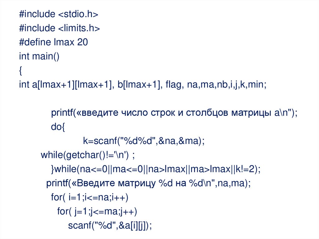 int a[lmax+1][lmax+1], b[lmax+1], flag, na,ma,nb,i,j,k,min;
