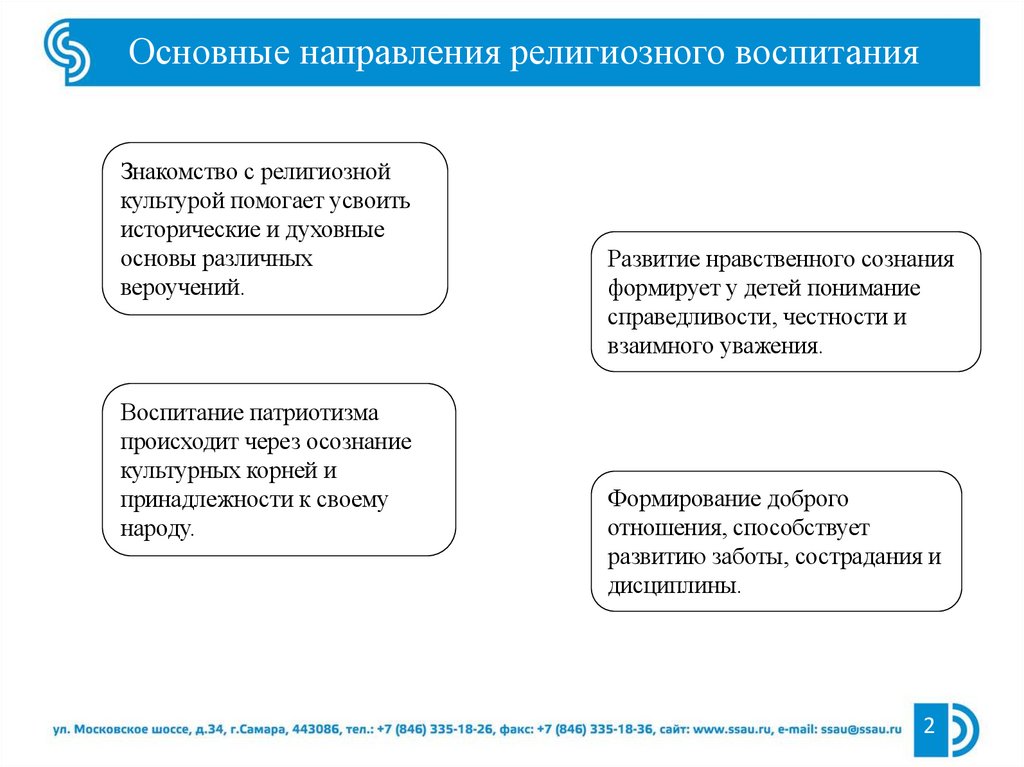 Основные направления религиозного воспитанияЗнакомство с религиозной