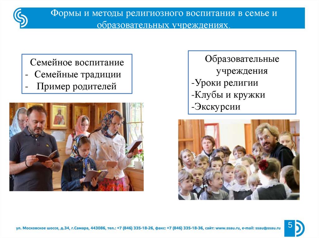 Формы и методы религиозного воспитания в семье иобразовательных учреждениях.