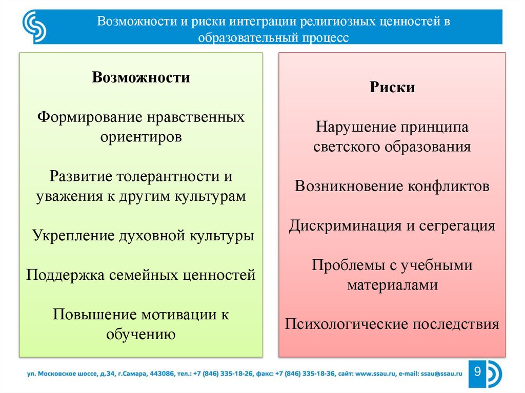 Возможности и риски интеграции религиозных ценностей вобразовательный процесс