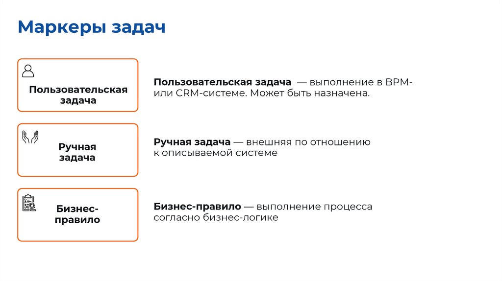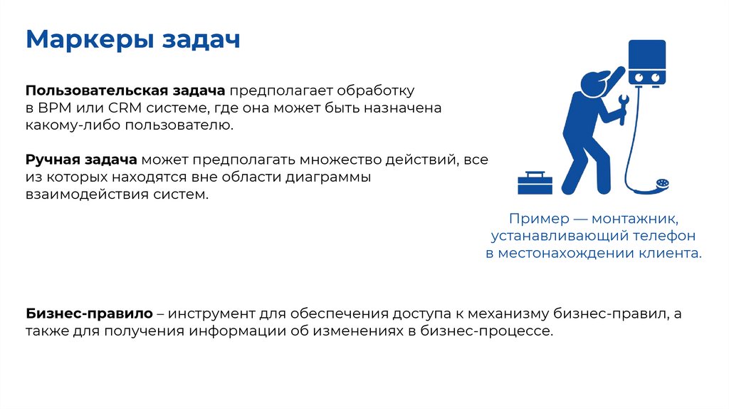 Пользовательская задача — выполнение в BPMили CRM-системе. Может быть назначена.
