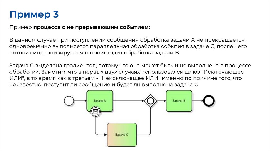 одновременно выполняется параллельная обработка события в задаче С, после чего