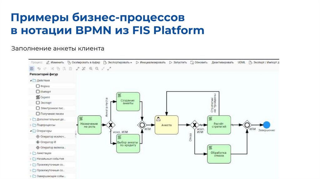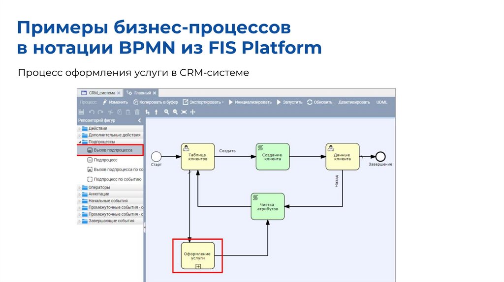 Примеры бизнес-процессовв нотации BPMN из FIS Platform
