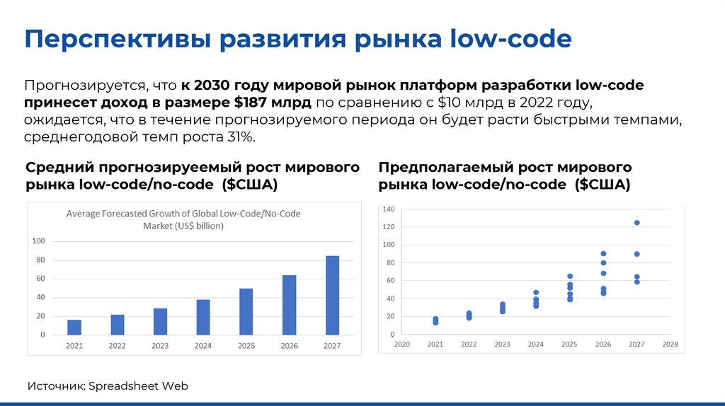Перспективы развития рынка low-codeПрогнозируется, что к 2030 году мировой рынок платформ разработки low-code