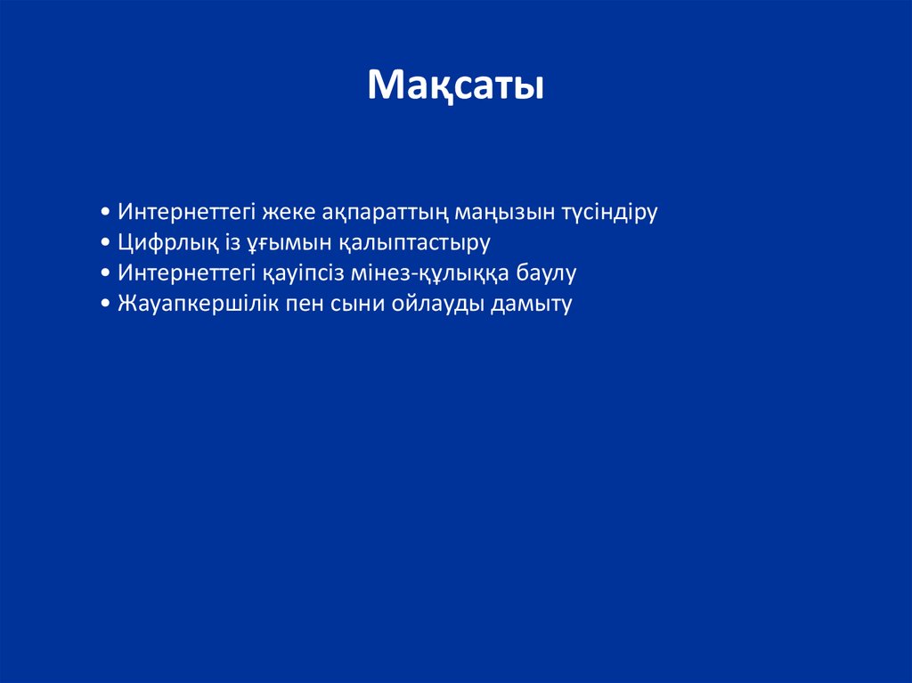 Мақсаты• Интернеттегі жеке ақпараттың маңызын түсіндіру