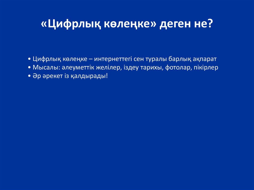 «Цифрлық көлеңке» деген не?• Цифрлық көлеңке – интернеттегі сен туралы барлық ақпарат