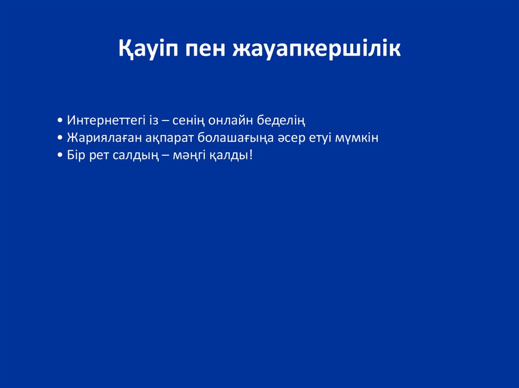 Қауіп пен жауапкершілік• Интернеттегі із – сенің онлайн беделің