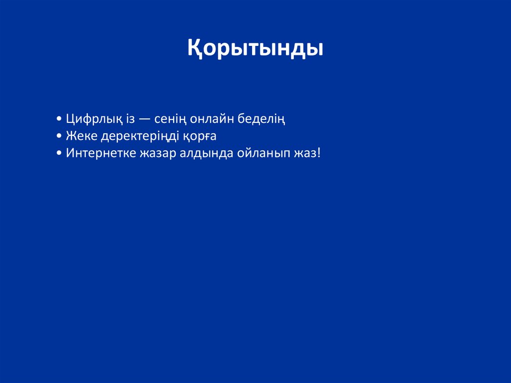 Қорытынды• Цифрлық із — сенің онлайн беделің