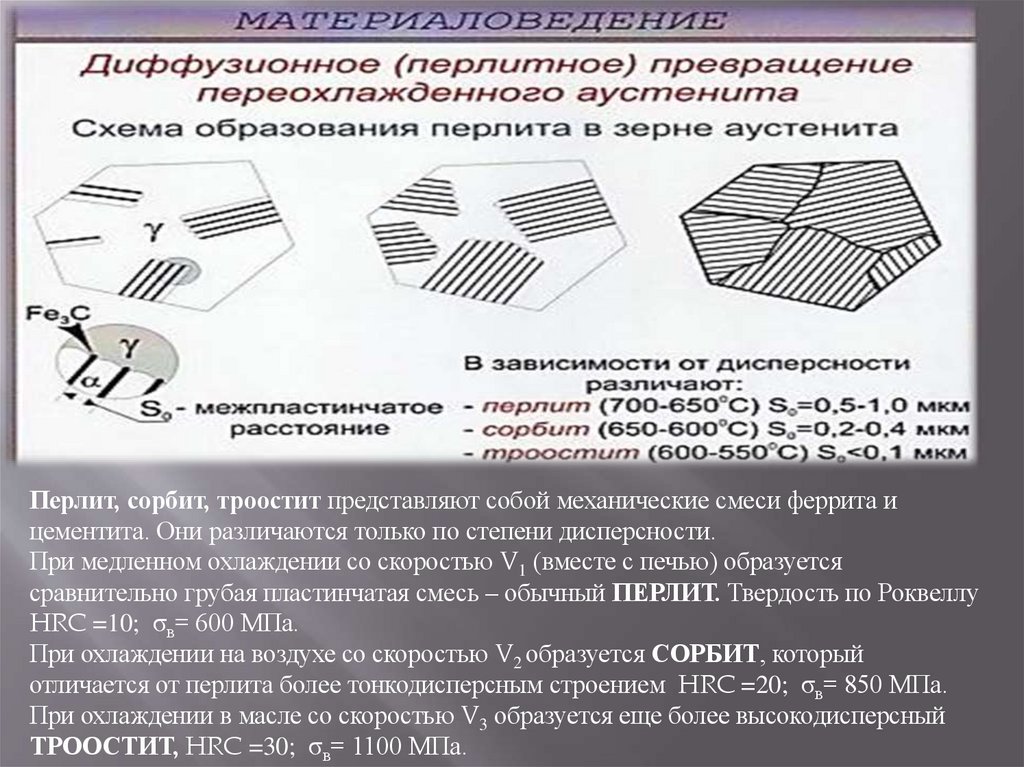 перлитного типа, таких как перлит, сорбит, троостит, а