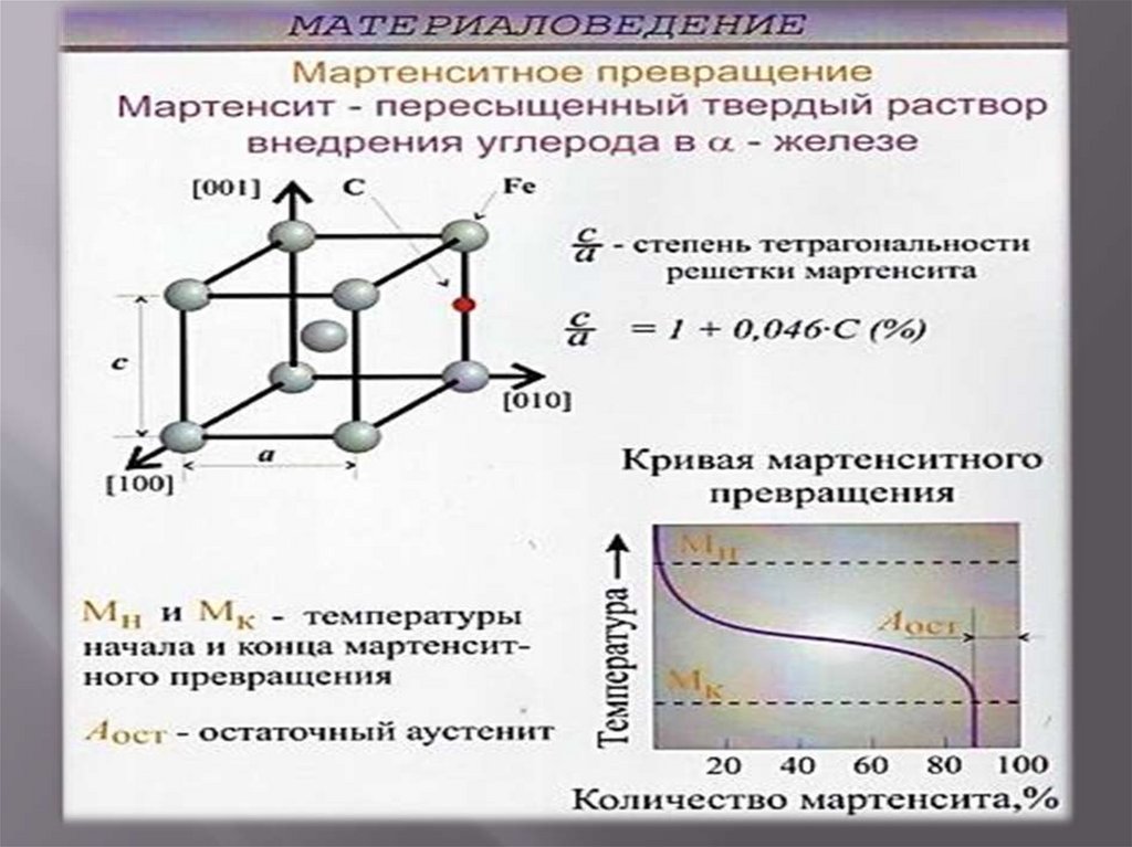 12. Третье основное превращение в сталях ( бездиффузионное сдвиговое превращение аустенита в мартенсит при больших переохлаждениях