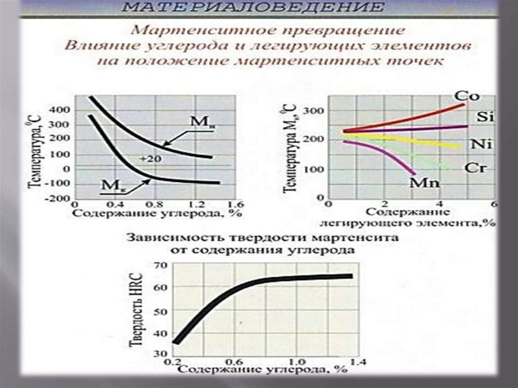 17. Влияние содержания углерода на температуру начала и конца мартенситного превращения