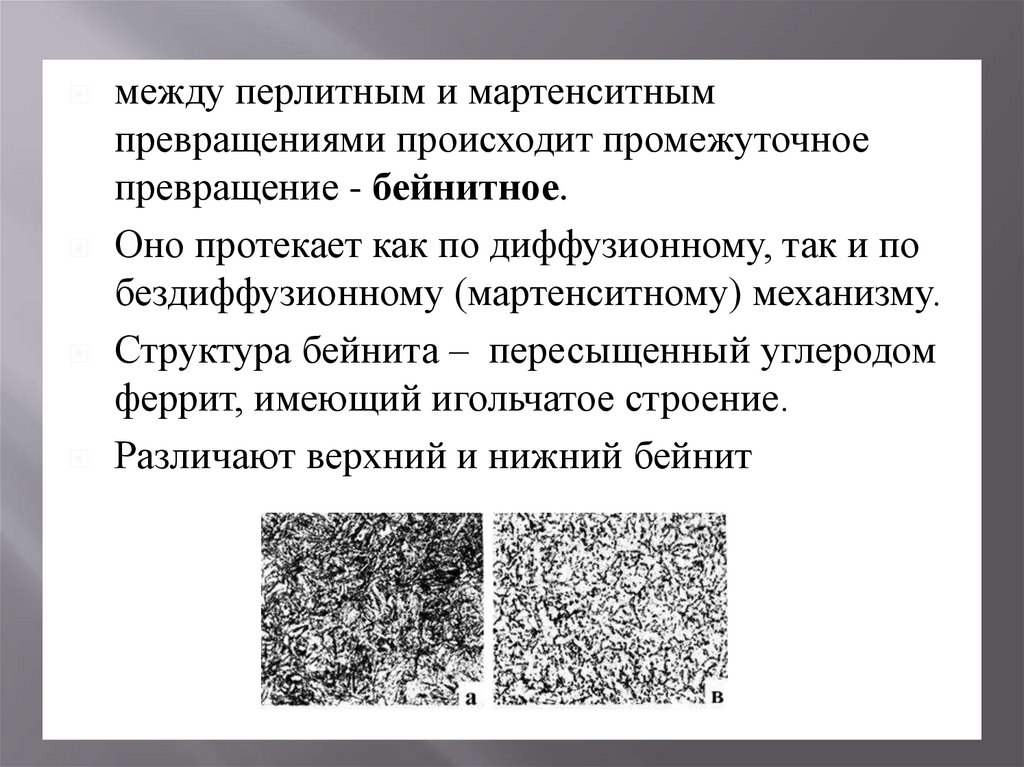 между перлитным и мартенситнымпревращениями происходит промежуточное