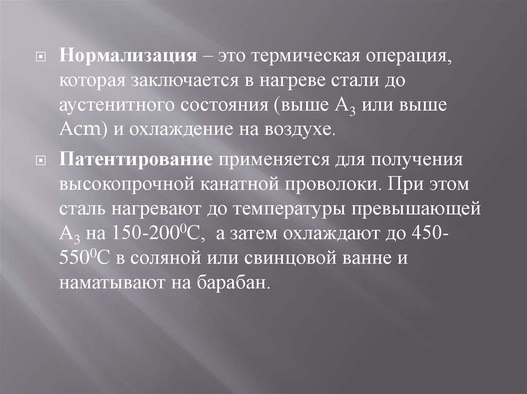 Нормализация – это термическая операция,которая заключается в нагреве стали до