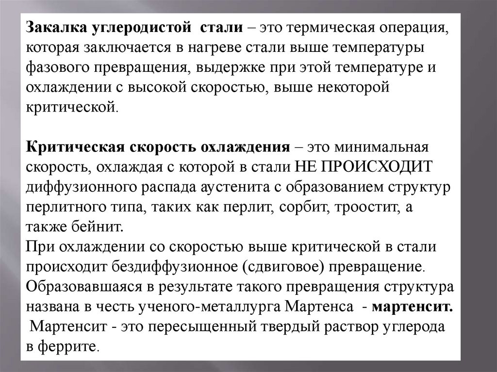 Закалка углеродистой стали – это термическая операция,которая заключается в нагреве стали выше температуры