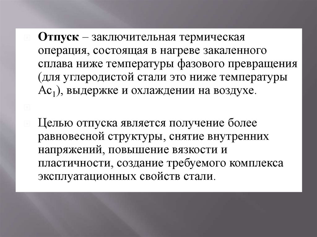 Отпуск – заключительная термическаяоперация, состоящая в нагреве закаленного