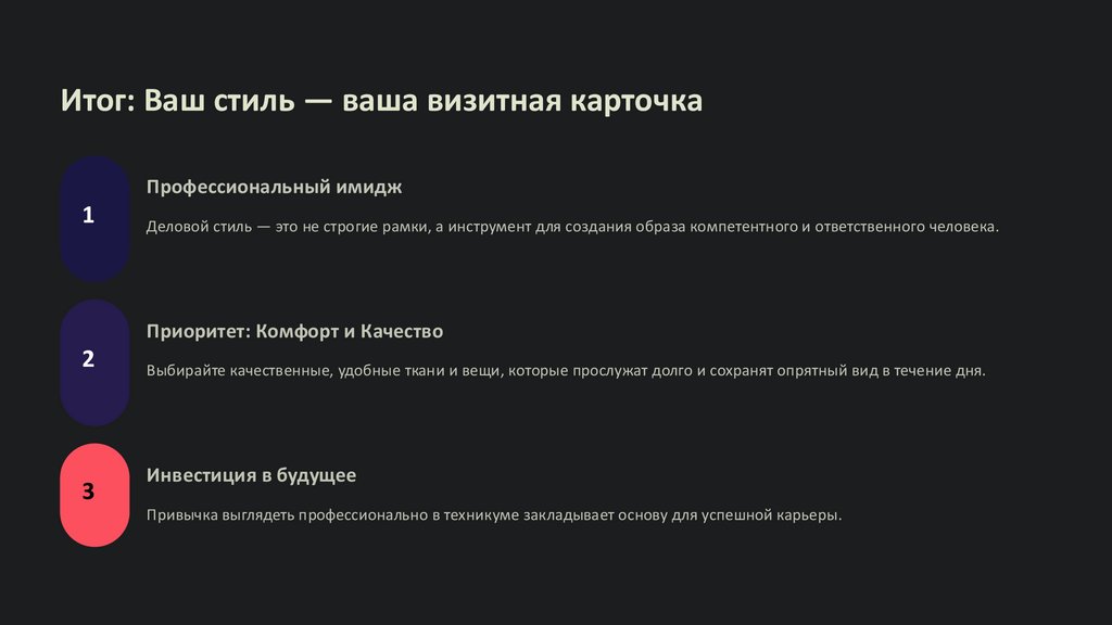 Привычка выглядеть профессионально в техникуме закладывает основу для успешной карьеры.