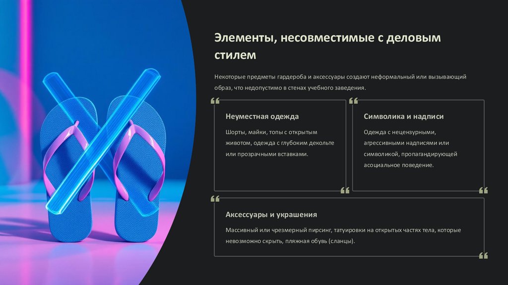 Некоторые предметы гардероба и аксессуары создают неформальный или вызывающий