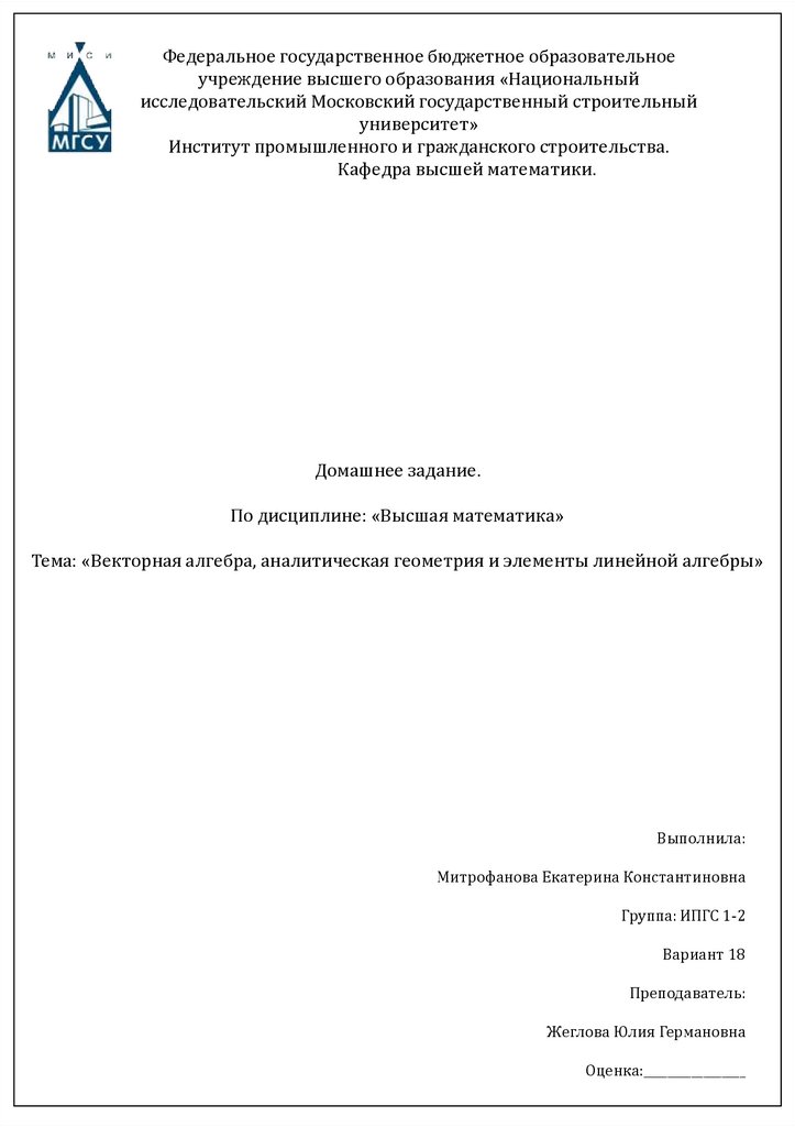 Тема: «Векторная алгебра, аналитическая геометрия и элементы линейной алгебры»