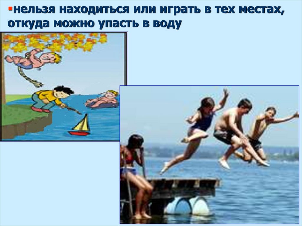 нельзя находиться или играть в тех местах,откуда можно упасть в воду