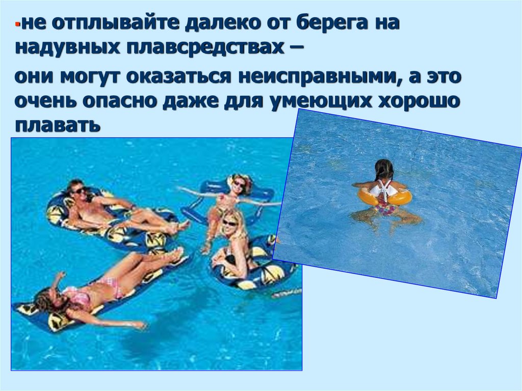 не отплывайте далеко от берега нанадувных плавсредствах –