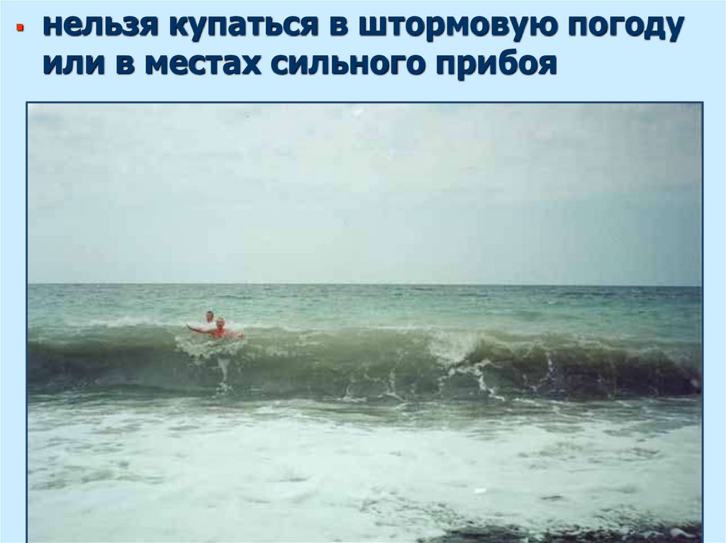 нельзя купаться в штормовую погодуили в местах сильного прибоя
