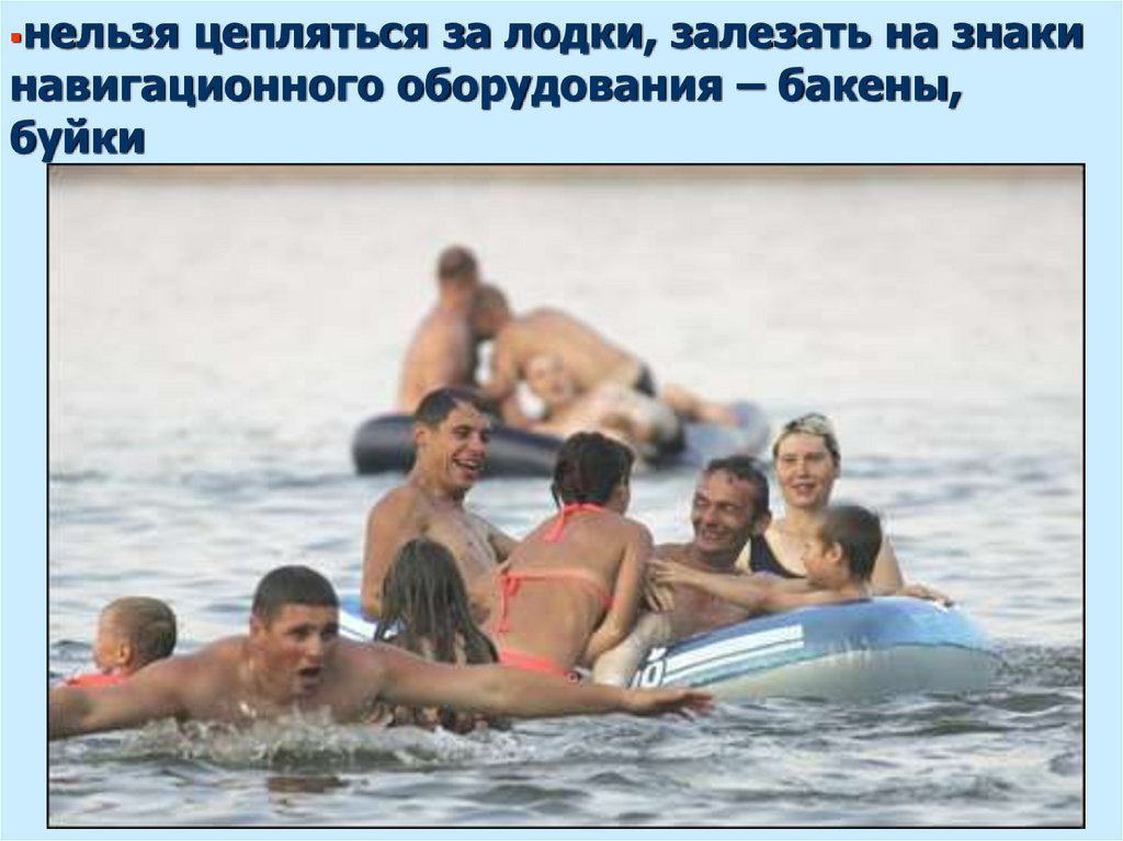 нельзя цепляться за лодки, залезать на знакинавигационного оборудования – бакены,